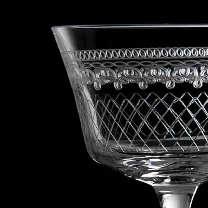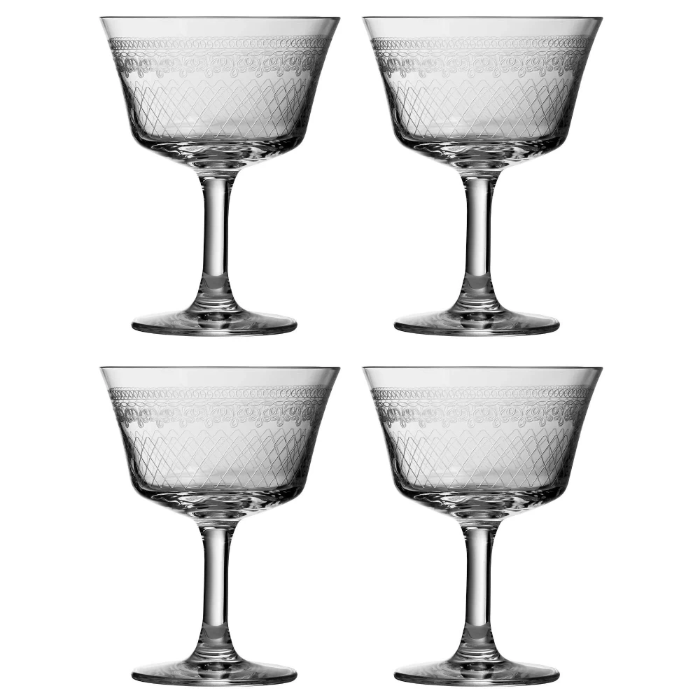 The 1910 Retro Fizz Cocktail Glass has an elegant Prohibition era aesthetic with its etched pattern inspired by classic Lady Hamilton Pall Mall design. Premium crystal offers excellent transparency complimenting the etched decoration for a beautiful sparkling finish.