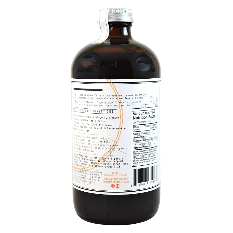 This artisanal tonic syrup offers a unique, refined flavour to your cocktail. Made with all natural ingredients in Montreal, Québec. Simply add this concentrated syrup to sparkling water. One bottle will make up to 25 drinks.