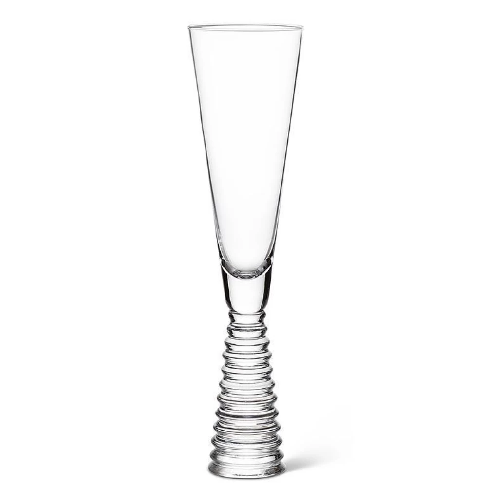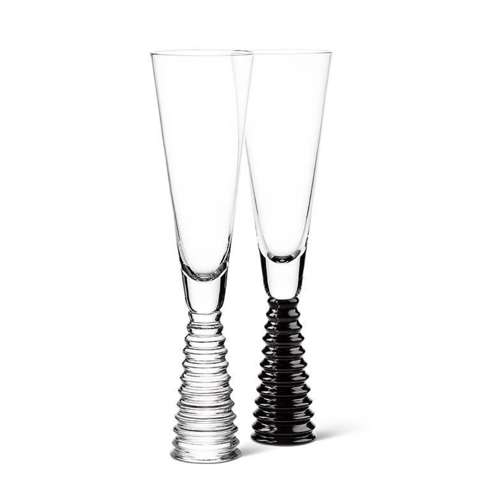 Take your entertaining higher with the help of this chic Stack Clear Base Flute. Crafted out of glass, the uniquely geometric shape of its black handle makes an elegant complement to the flute’s narrow, clear bowl for a contemporary way to celebrate any occasion. Also available with a black base and in a Wine Goblet and Martini style.
