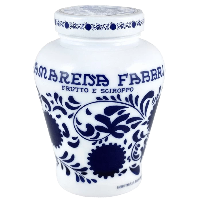 Famous sweet wild Italian cherries, bathed in a thick syrup, packed in a stunning ceramic jar.