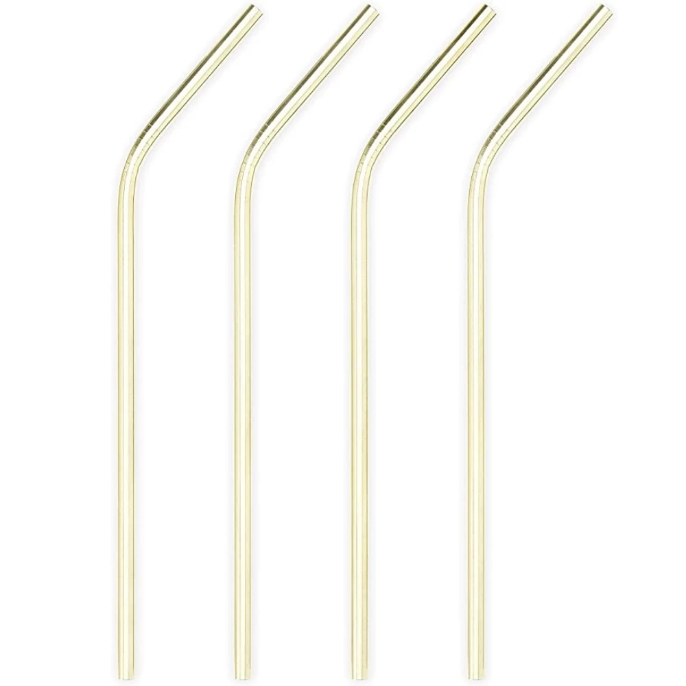 Garnish your drink with a classic gold cocktail straw. Each one in this set of four arcs smoothly from any highball glass to your lips for the perfect sip.