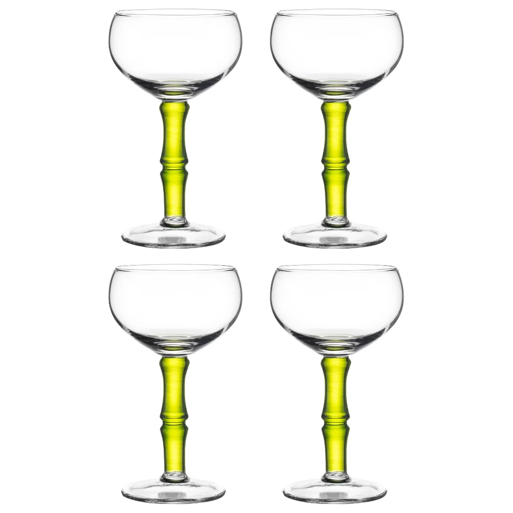Conjure up tropical feelings with the green bamboo stemmed coupe glass. Use it to serve your favourite Champagne, sparkling wine, cocktail, or tiki drink!