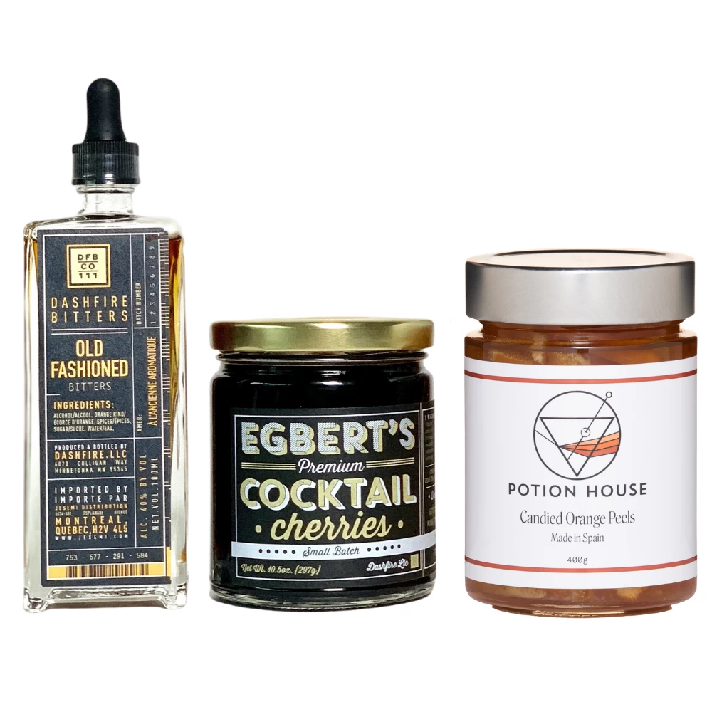 - Egbert’s Premium Cocktail Cherries: juicy cherries infused with Dashfire Old Fashioned Aromatic Bitters