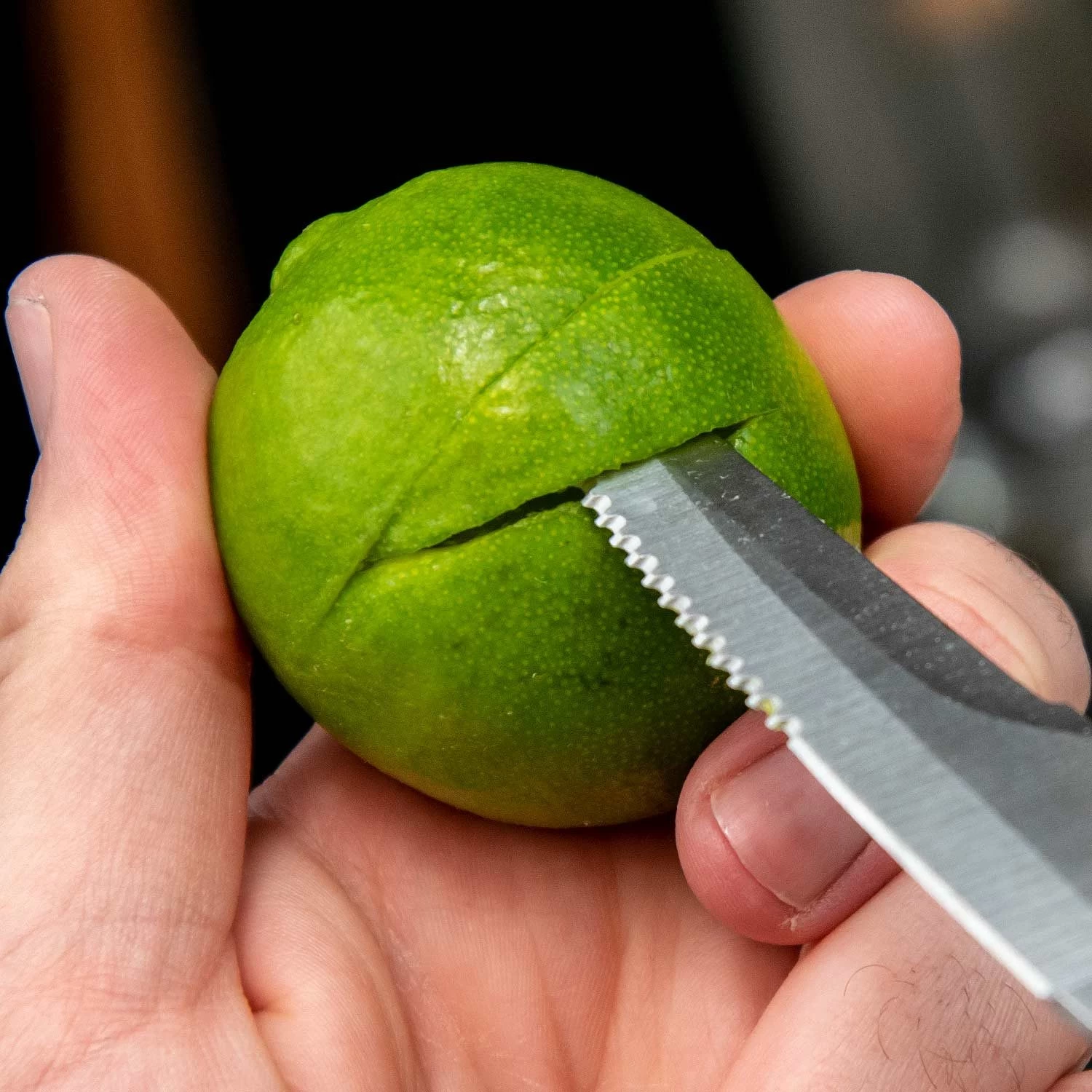 Forked tip for handling ingredients, avoiding contact with hands. This reduces flavour contamination by keeping fruit juices from your hands, and increasing hygiene levels by keeping your hands clean.