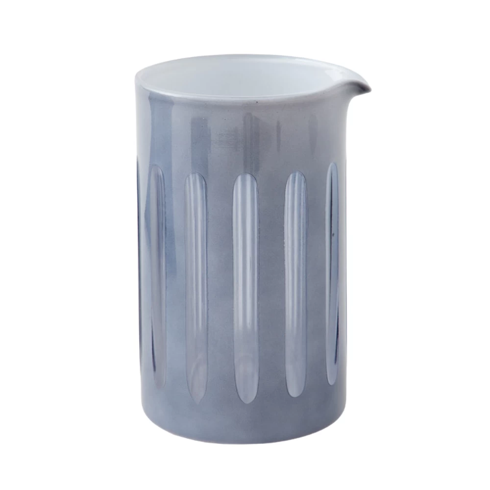 This striking glacier blue mixing glass is inspired by the vertical lines of the towered skyscrapers of the 1920’s and 30’s. Each piece is finished by hand in Turkey, using a multi-step process that is executed by artisans. No two are exactly alike, and subtle nuances in depth of colour and cutwork are to be expected and embraced.Â