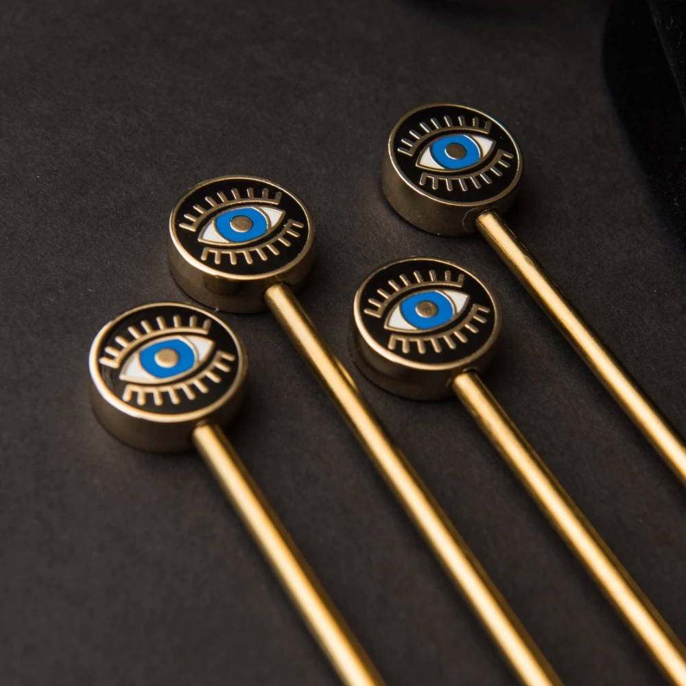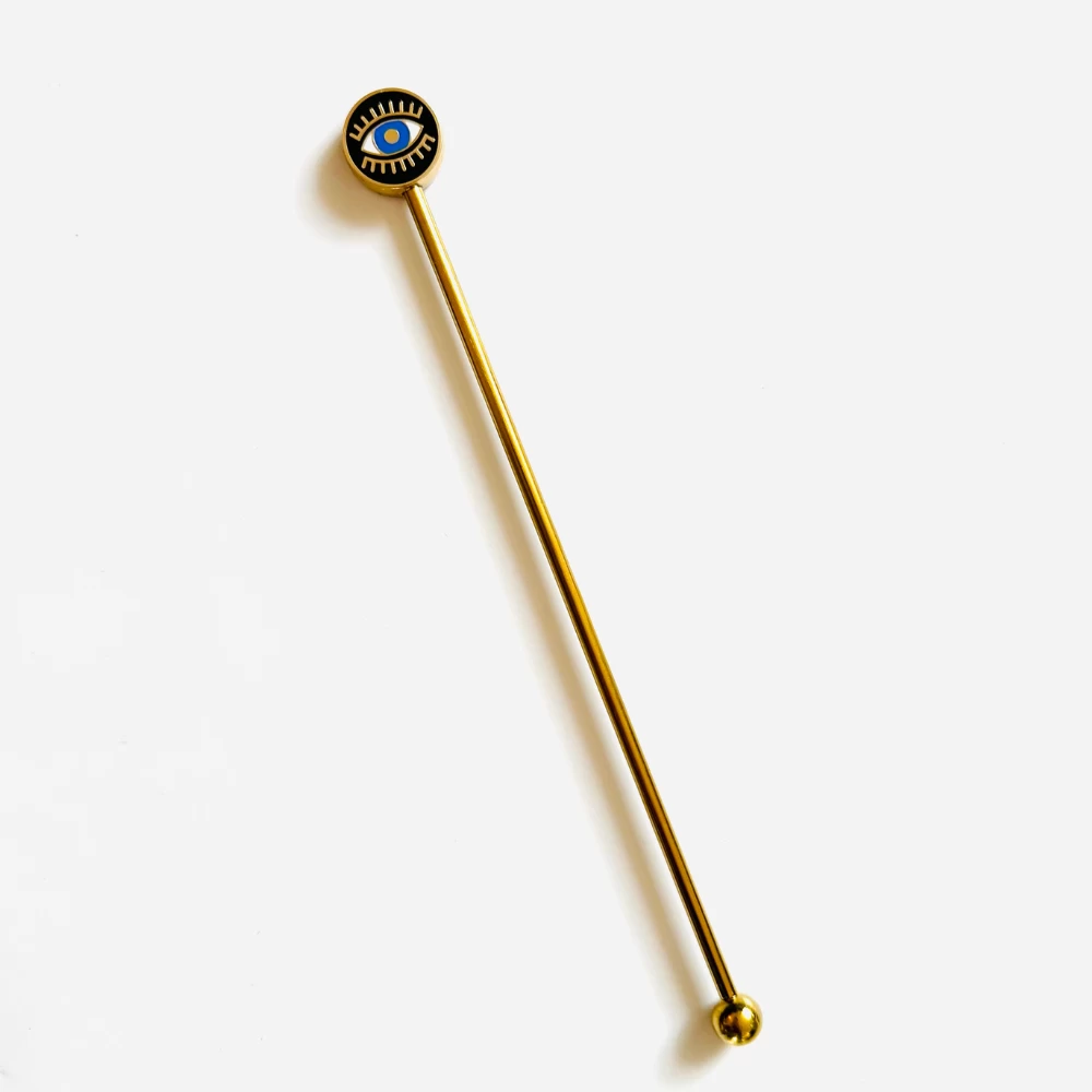 Drink like nobody’s watching. An elegant stir stick printed with watchful evil eyes to ward off any spirits other than the drinkable kind.Â