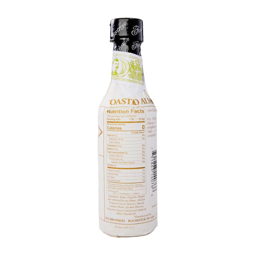 Fee Brothers Toasted Almond bitters are a one of a kind, sweet and nutty burst of flavour. Use in baking to replace vanilla extract, liven up ice cream, add to tropical fruit cocktails like Mai Tais, rum- and tequila-based drinks, or complement coffee and tea. Also excellent in Old Fashioneds and Sours.