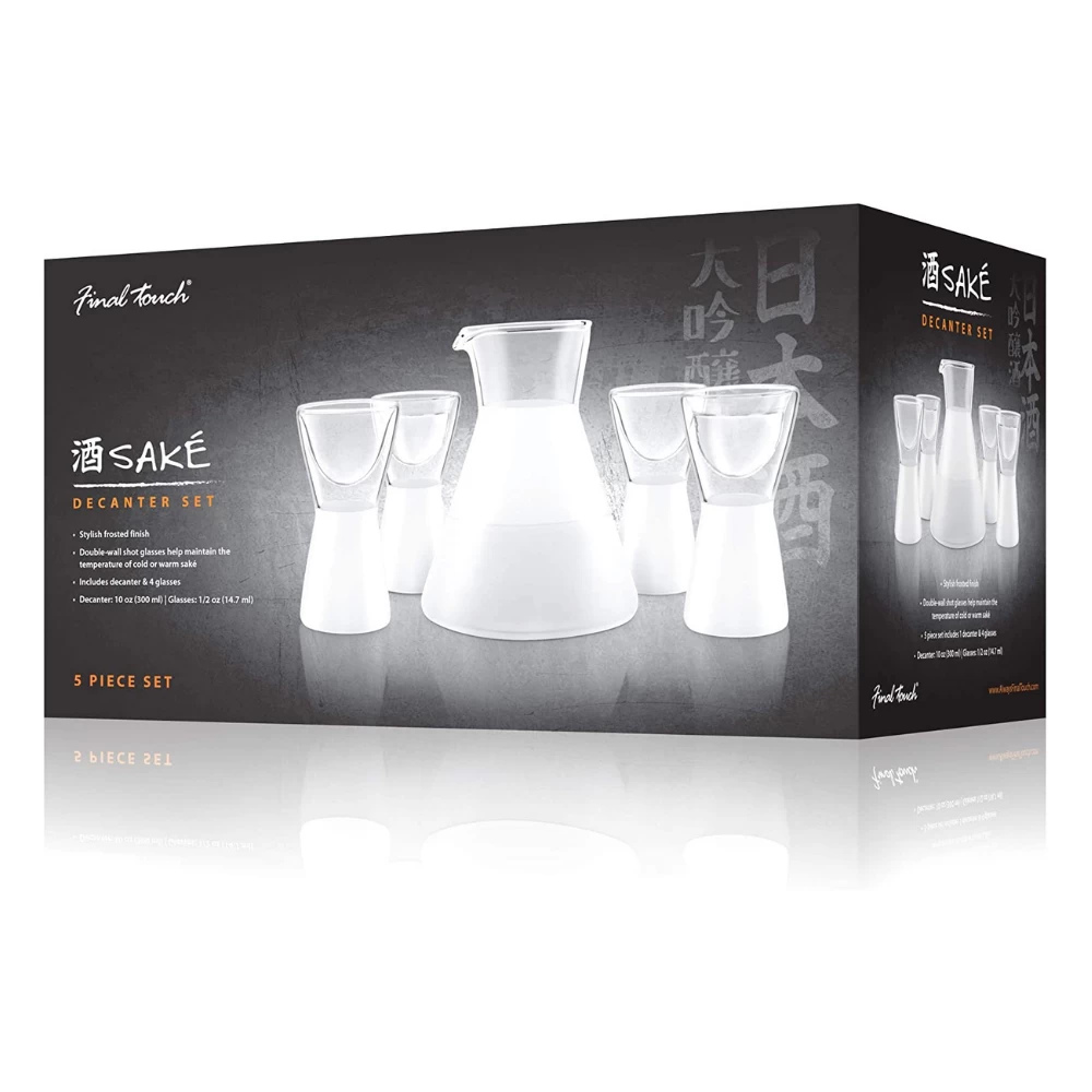 Entertain your guests with this all-in-one saké decanter set. Whether you enjoy sake cold or warm, each double-wall glass included will help keep your warm hands from changing the temperature of the saké. The included decanter holds up to 10 oz. (300mL) and features a spout for easy pouring into each glass while serving.