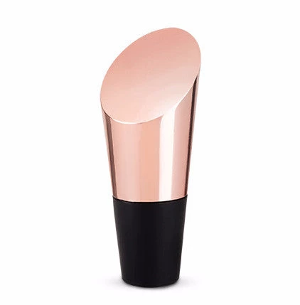 Eye-catching copper with a smooth silicone sleeve puts this heavyweight bottle stopper centre stage. Elegant in shape, the slanted crown and burnished metal suggest an opulence that transcends the average tavern contrivance.