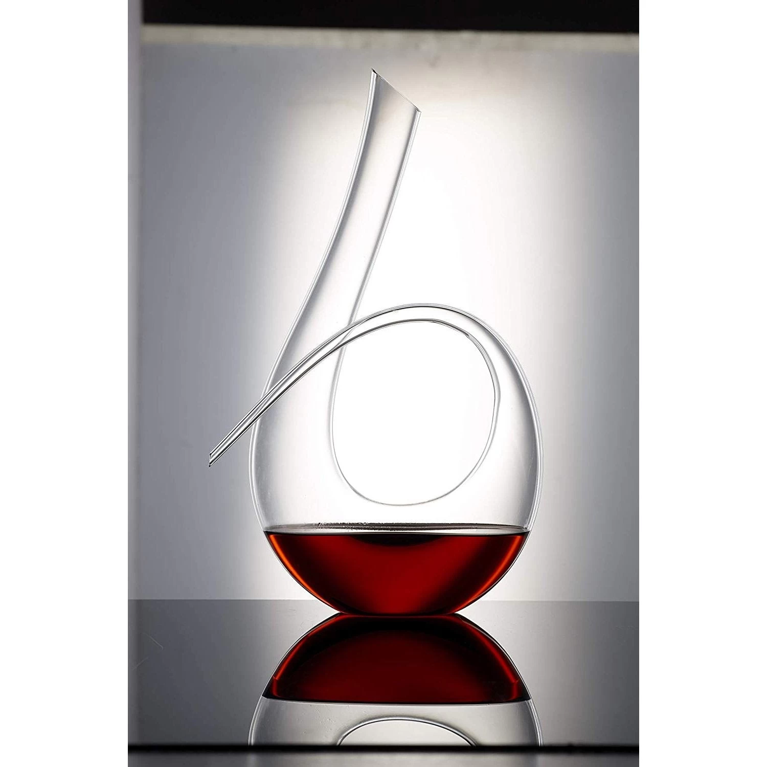 This twisted horn decanter is shaped like the number six and recalls the sleekly elegant curves of a brass instrument. The elegant shape allows for easy no-drip pouring and handling. Will fit a standard 750mL bottle of wine.Â