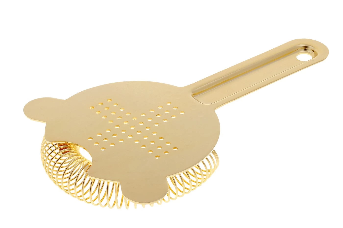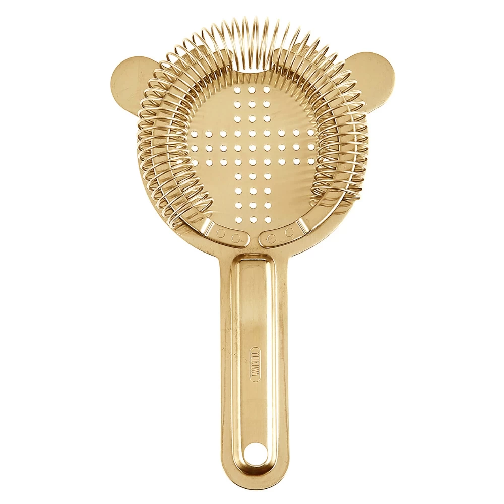 This lightweight Japanese-made gold hawthorne strainer will help you hold back ice as you strain cocktails from a mixing glass or shaker.