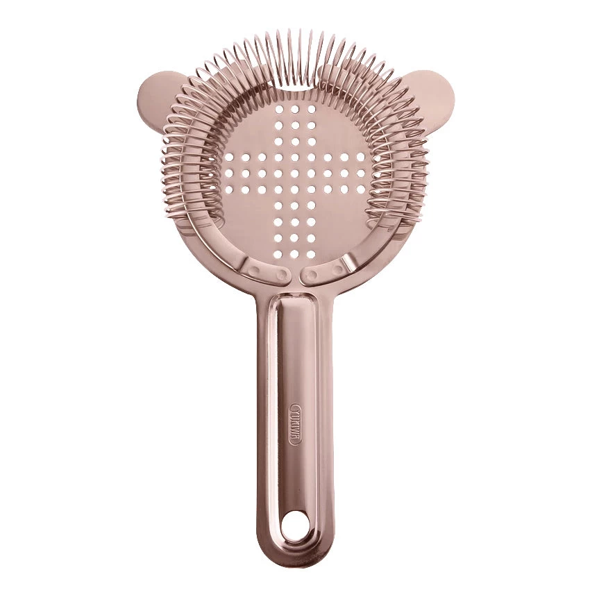 This lightweight Japanese-made rose gold hawthorne strainer will help you hold back ice as you strain cocktails from a mixing glass or shaker.