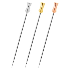 Skewer your garnishes in style with these Japanese-made cocktail pins, featuring a stainless steel body with concave-shaped top in choice of stainless steel, gold, or rose gold.