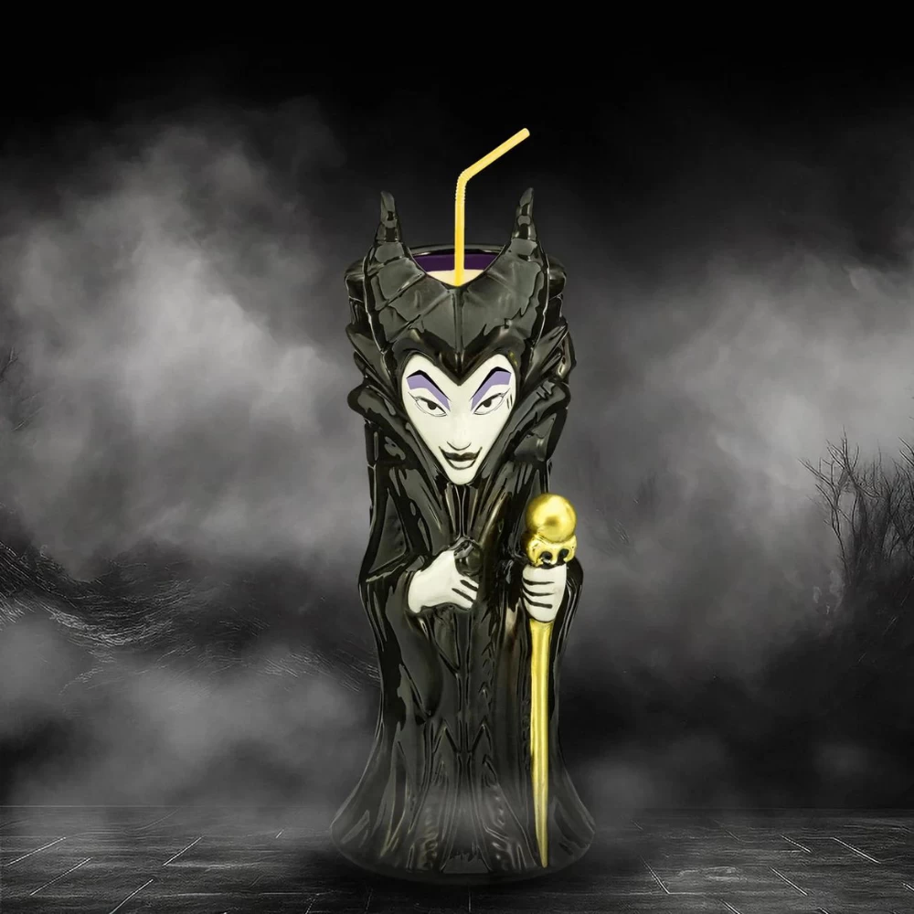 Enter a realm of dark sorcery with this Geeki Tikis mug, featuring Maleficent from Disney’s Sleeping Beauty. This fully sculpted tumbler features meticulous detailing, from Maleficent’s expressive face to the intricate design of her robe and golden sceptre. The hand-painted details enhance the overall artistry, creating a collectible that authentically represents the malevolent charm of the wicked fairy. The interior reveals a splash of purple, perfectly matching Maleficent’s signature colour.