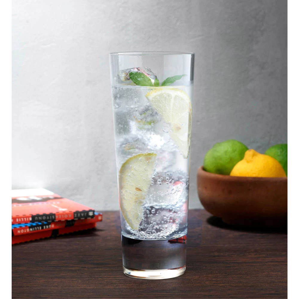 Free from the unnecessary embellishments and striking in its proportions, the NUDE Highlands set of highball glasses pays homage to the purity of lead-free crystal. The thick base is a perfect match for the thin, flared lines above it — a common thread running through the series which also includes whisky glasses.