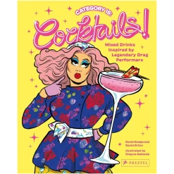 Category Is: Cocktails! features original recipes for 60 cocktails and zero-proof drinks, alongside beautifully-rendered illustrations and profiles of the personalities who inspired them. The drag legends here run the gamut: designers, dancers, comedians, community activists, contortionists, Emmy winners, and Broadway actors. The book includes drag’s big names, such as stars of reality TV show RuPaul’s Drag Race Kim Chi, Trixie Mattel, and Latrice Royale, to scene stalwarts Divine and Peaches Christ, to international performers like Pabllo Vittar and Pangina Heals—as well as culturally significant figures, like vaudevillian king Annie Hindle and activist Stormé DeLarverie.