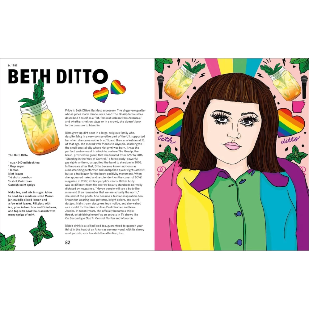 Each double-page spread features a recipe crafted to reflect its namesake’s personality, style, or legacy. This ranges from The Gloria Steinem, which uses a complex liquor with a radical twist, to The Beyoncé, made, of course, with lemonade. The cocktails are simple to make, kitchen-tested, and incorporate easy-to-find ingredients. Snappy, informative biographies, illustrated with vibrant portraits, offer revealing insights into the women’s lives.