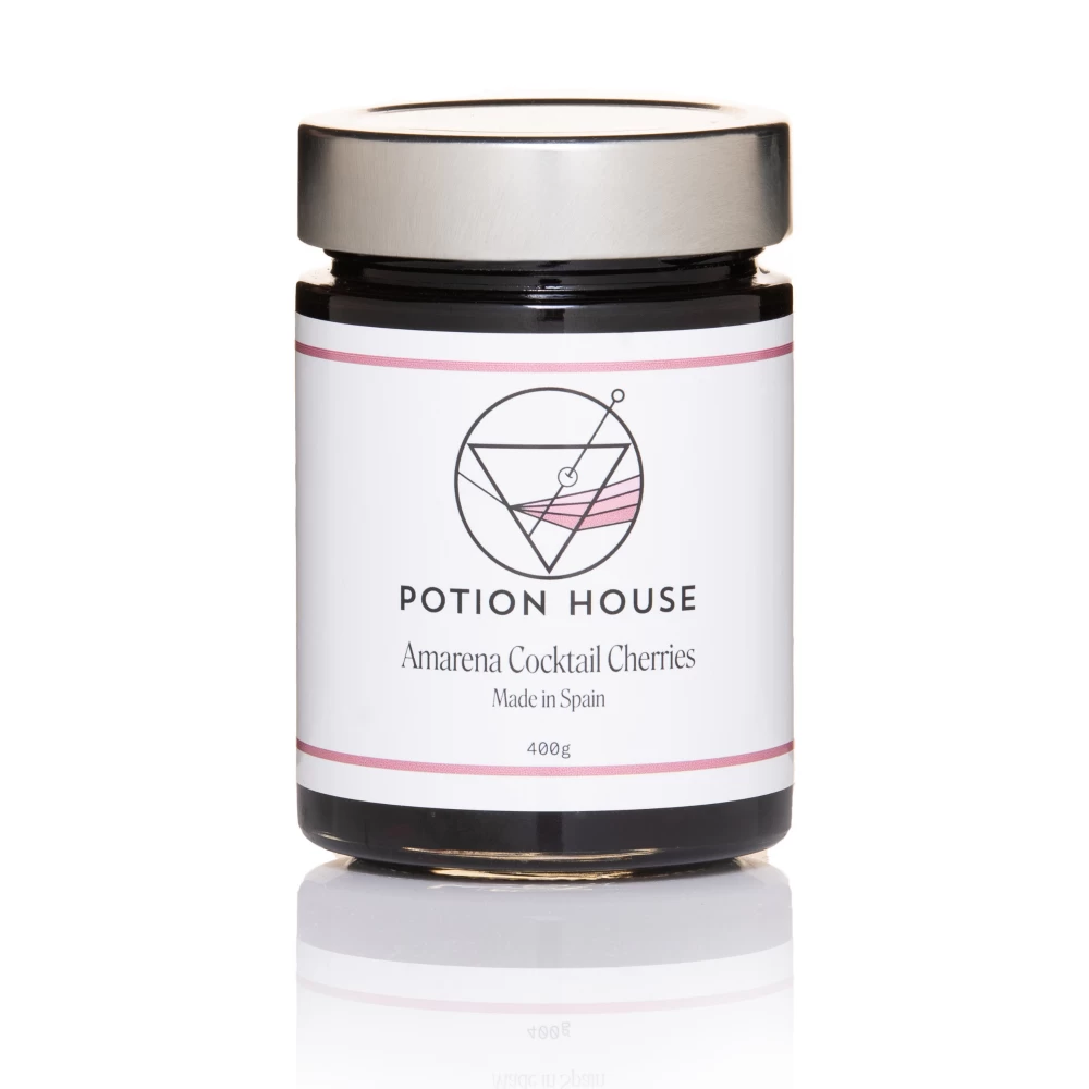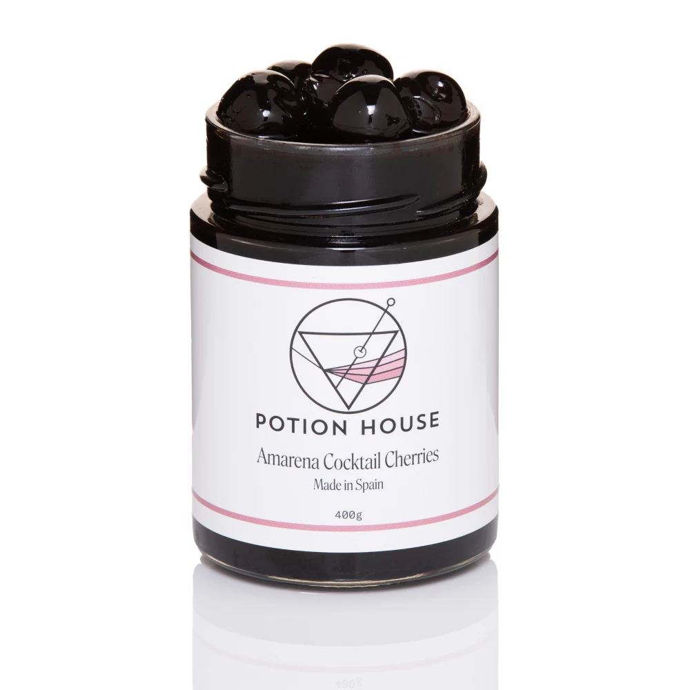 Potion House Amarena Cocktail Cherries are dark and wild — tart and sweet — the perfect garnish treat! Spanish-grown cherries are picked at their peak ripeness and preserved in a syrup with a dose of amarena cherry juice lending fruity balance. The ultimate garnish for classic cocktails like the Old-Fashioned, Manhattan and Whiskey Sour, plus all sorts of Tiki creations!Â