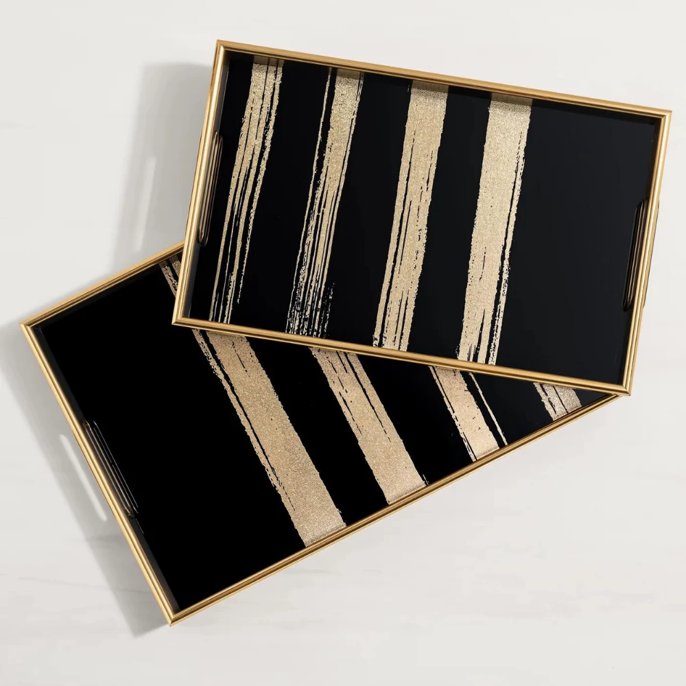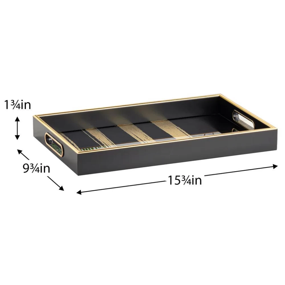 The gorgeous Art Deco inspired pattern of these glass top trays make them truly stand out. While they make a perfect serving piece, they will make any space shine when used as a decorative accent piece. The plastic trim and glass top makes them easy to care for.
