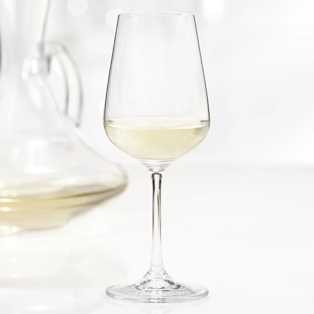 Made with lead-free crystalline reinforced with titanium: brilliant shine and superior light refraction. Laser cut and fire polished rim.Â