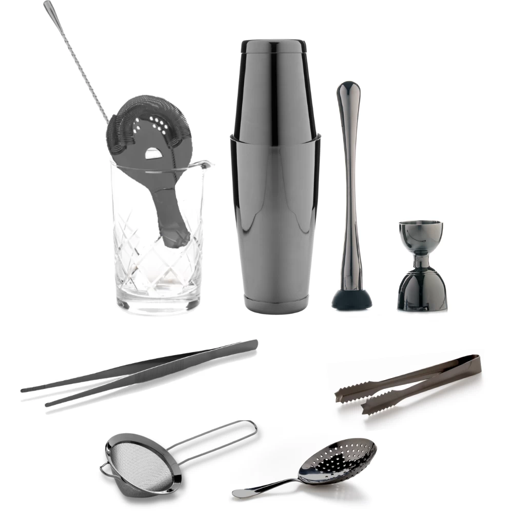 This 10-piece gunmetal bar set is the ultimate kit for cocktail lovers wanting to advance their skills. Everything you need to shake and stir your way to great cocktails at home!