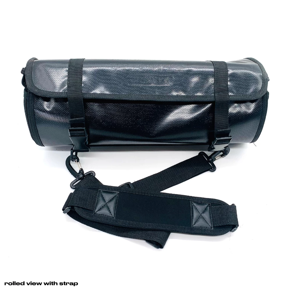 - Rolls up and securely snaps shut