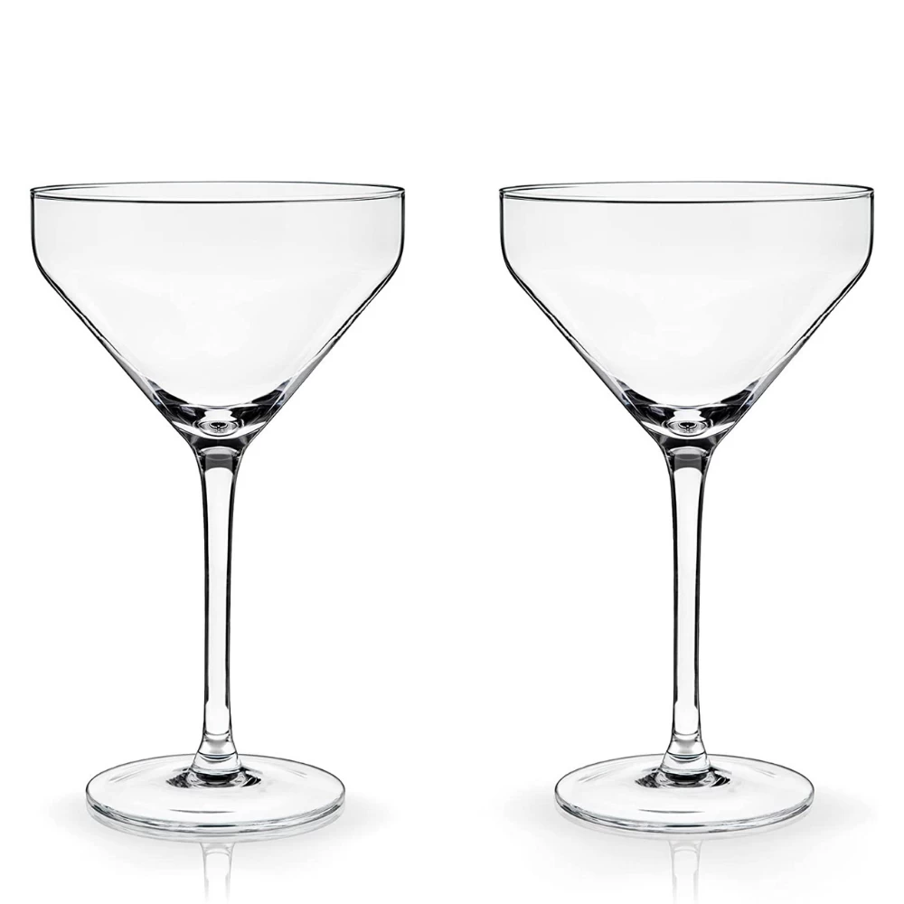 Ideal for a classic martini whether dirty or dry, these stemmed martini coupes are crafted from sparkling lead-free crystal and have a modern angled silhouette.