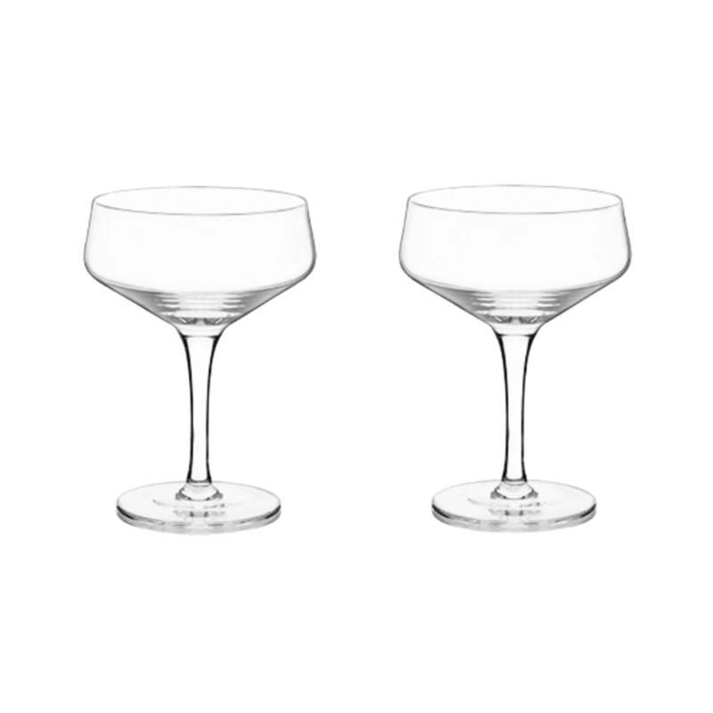 Rooted in centuries of Venetian glassmaking tradition, crystal offers the purest, most elegant drinkware experience available. Its perfect clarity coupled with precise lines and angles define the flawlessly crafted crystal coupe glasses, drawing light through the glass to illuminate the libations within.